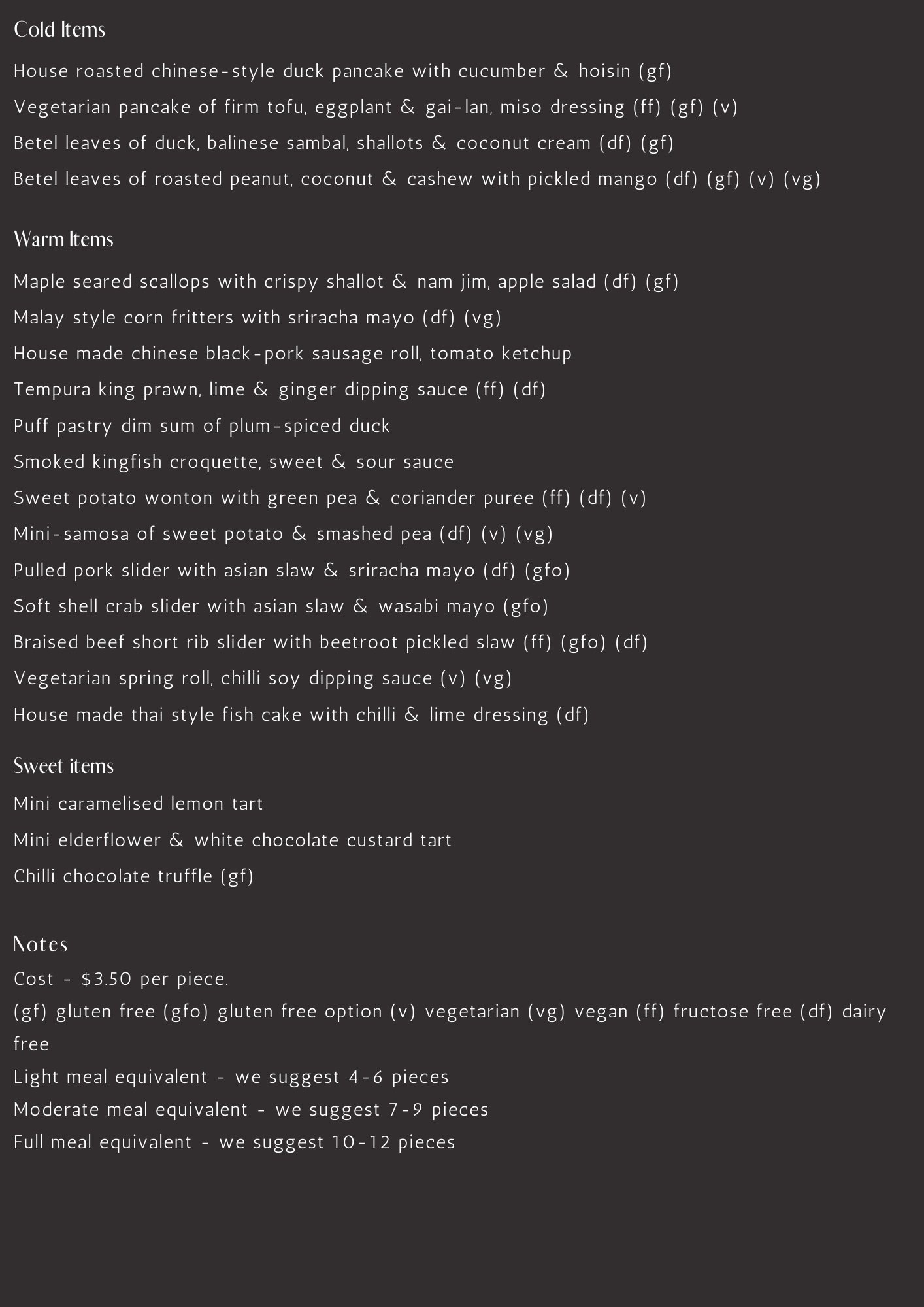Canapé Menu